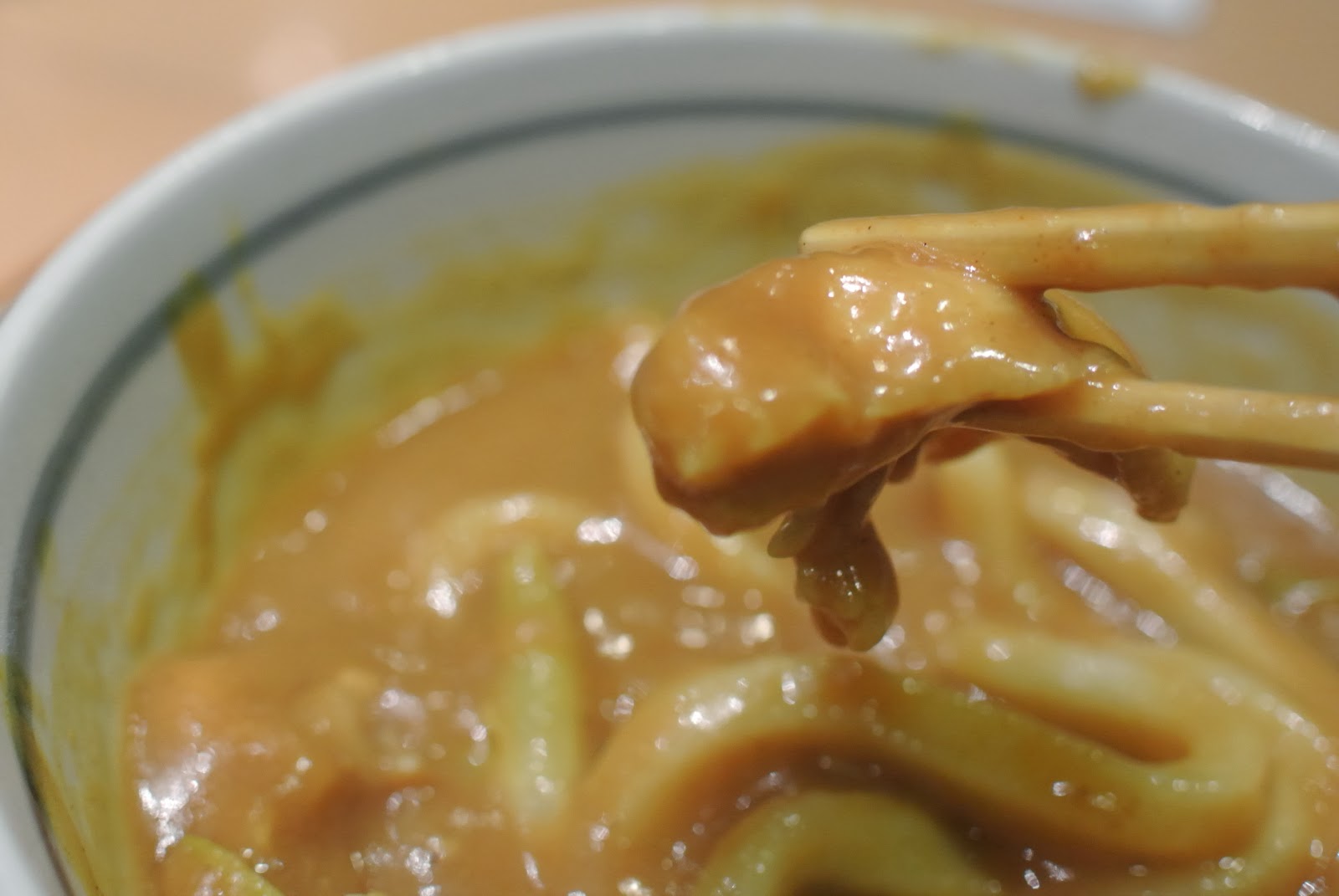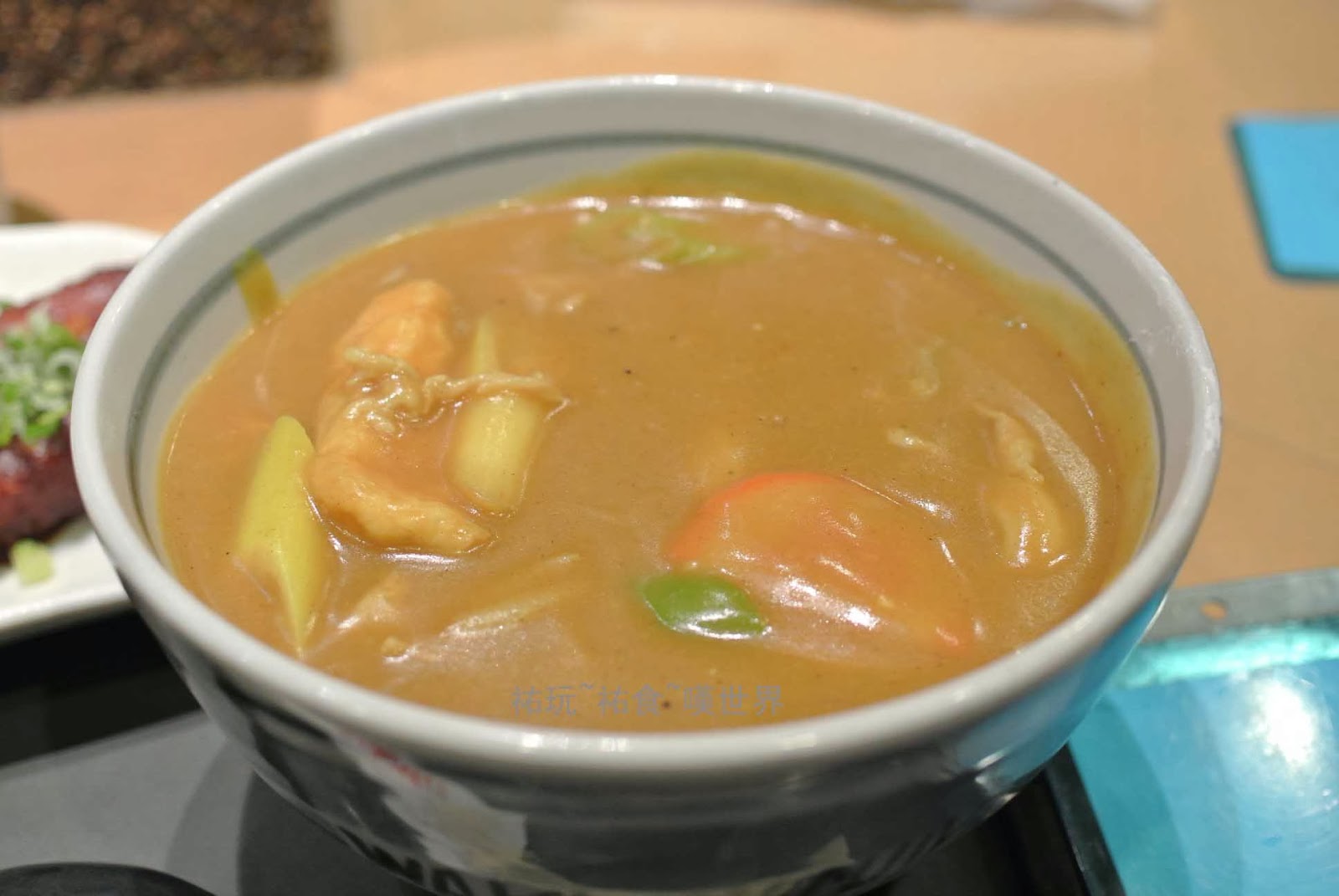 咖哩湯底非常濃郁,見到旁邊的日本人大口大口地喝下湯底,真是佩服!