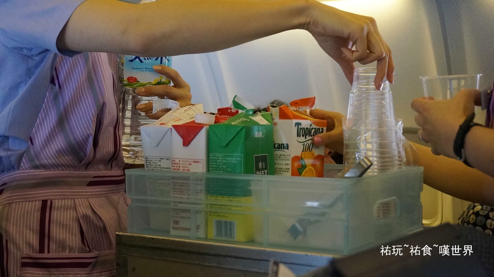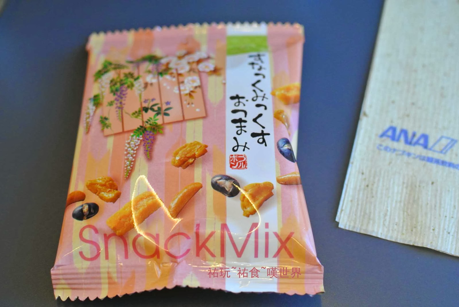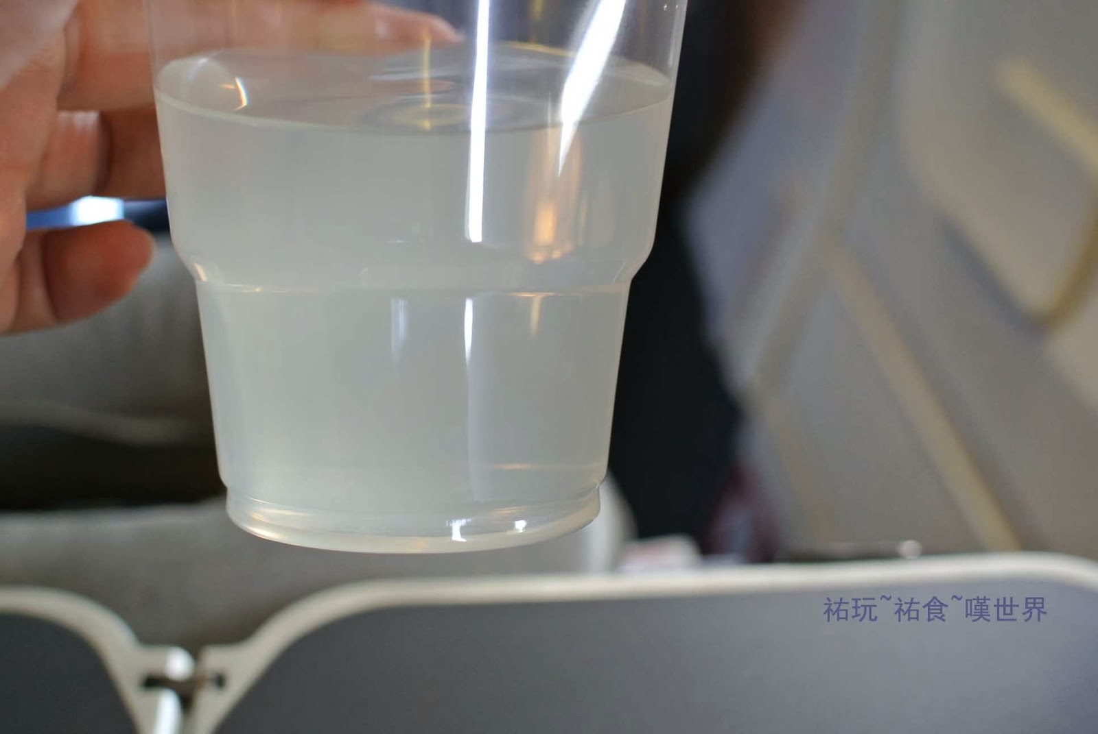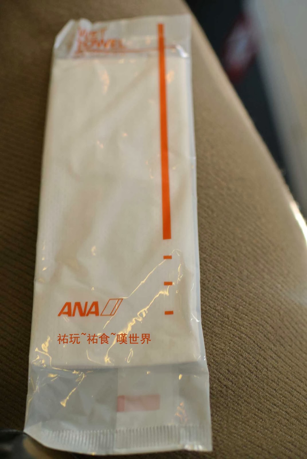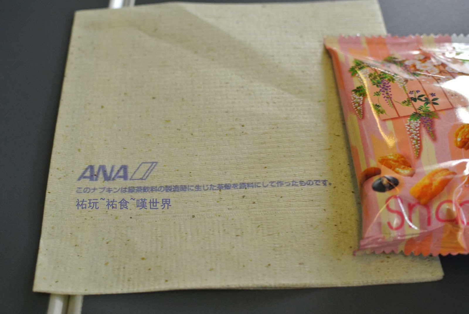 起飛不久飛機穩定了,空中小姐便送上濕紙巾及米果小吃