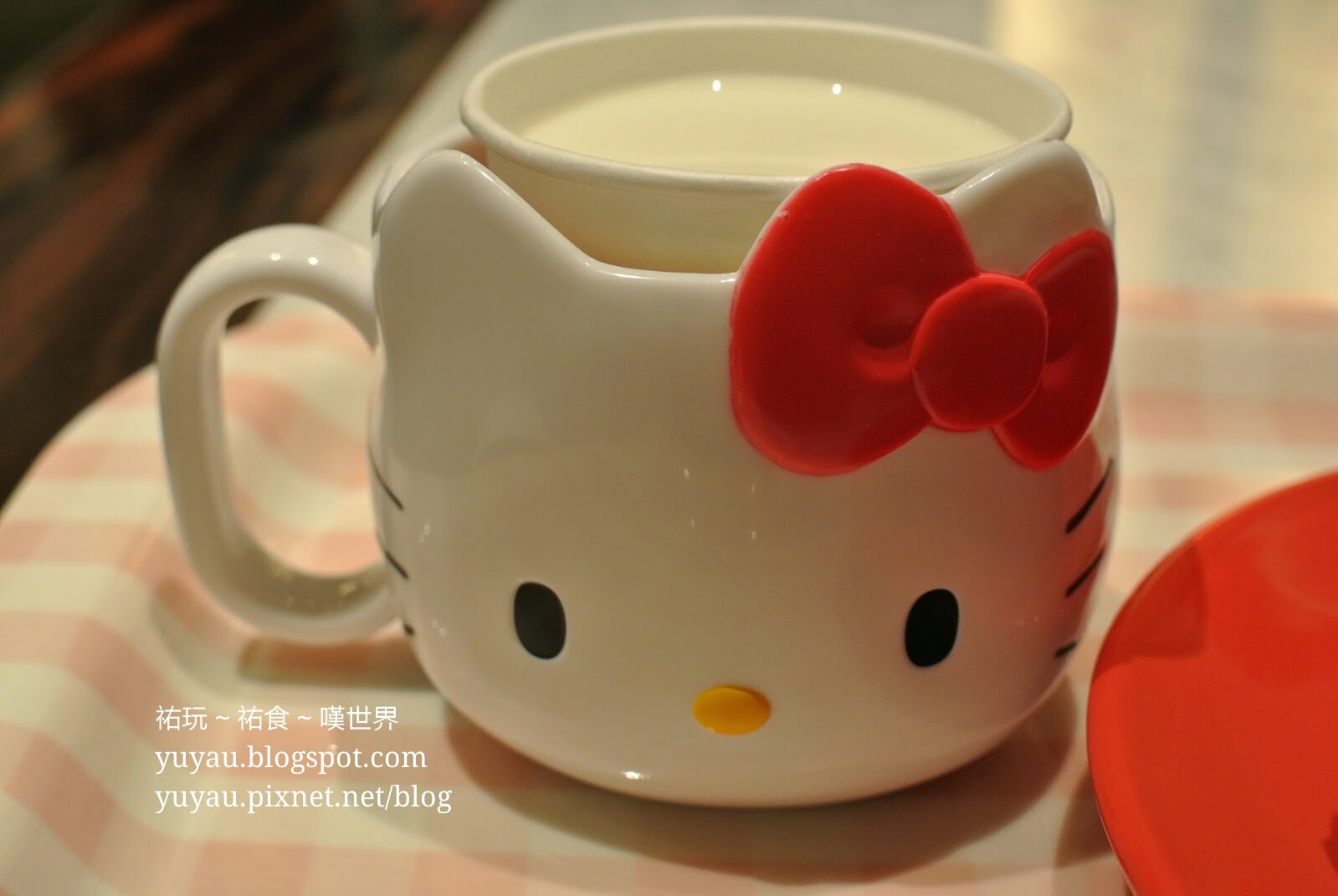 飲品方面先選了熱抹茶牛奶,見到Hello Kitty杯子超可愛 (杯子可帯回家作記念),亦一併買下