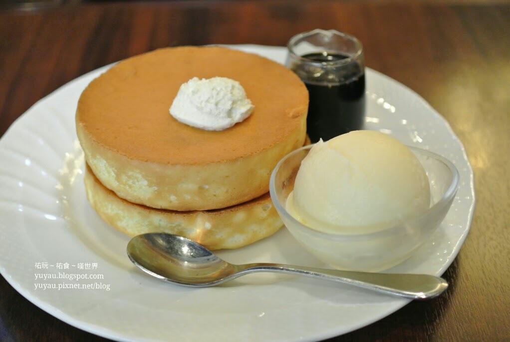 點了雙層厚鬆餅700円,我另外追加一球雪糕 (150円)