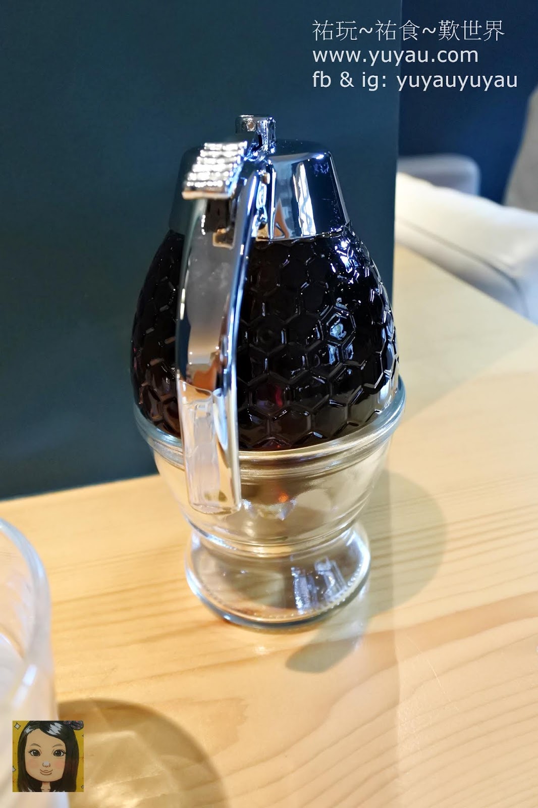 楓糖漿的器皿好特別,開口在下方的。
